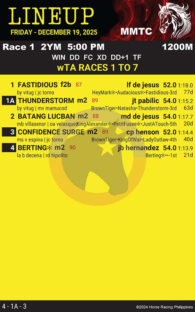 Metro Turf Race Card for December 19, 2025 – Race 1