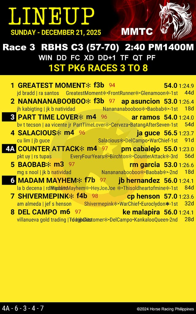 Metro Turf Race Card for December 21, 2025 – Race 3