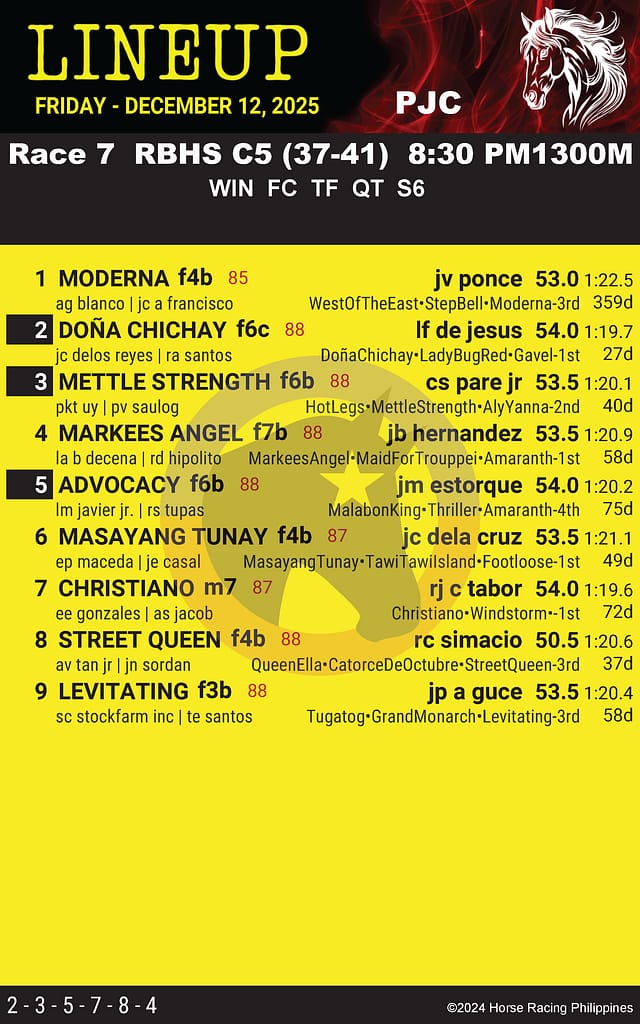 Philippine Jockey Club Race Card for December 12, 2025 – Race 7